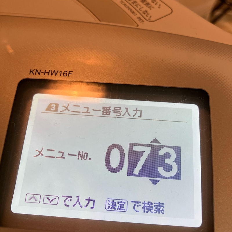 メニューを選ぶ→メニュー番号で探す→メニューNo.073 決定→調理を開始する